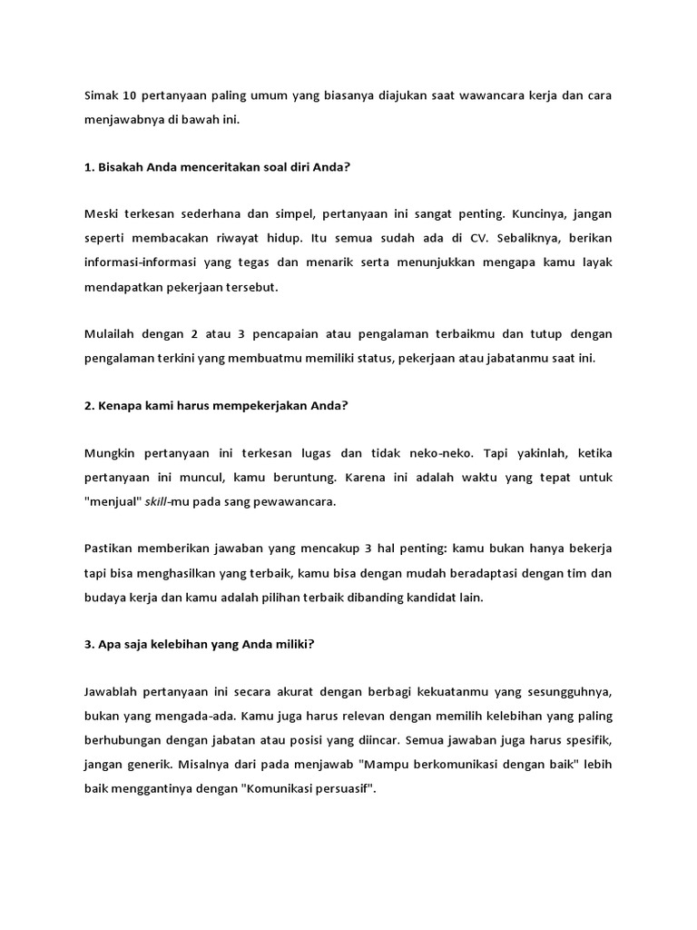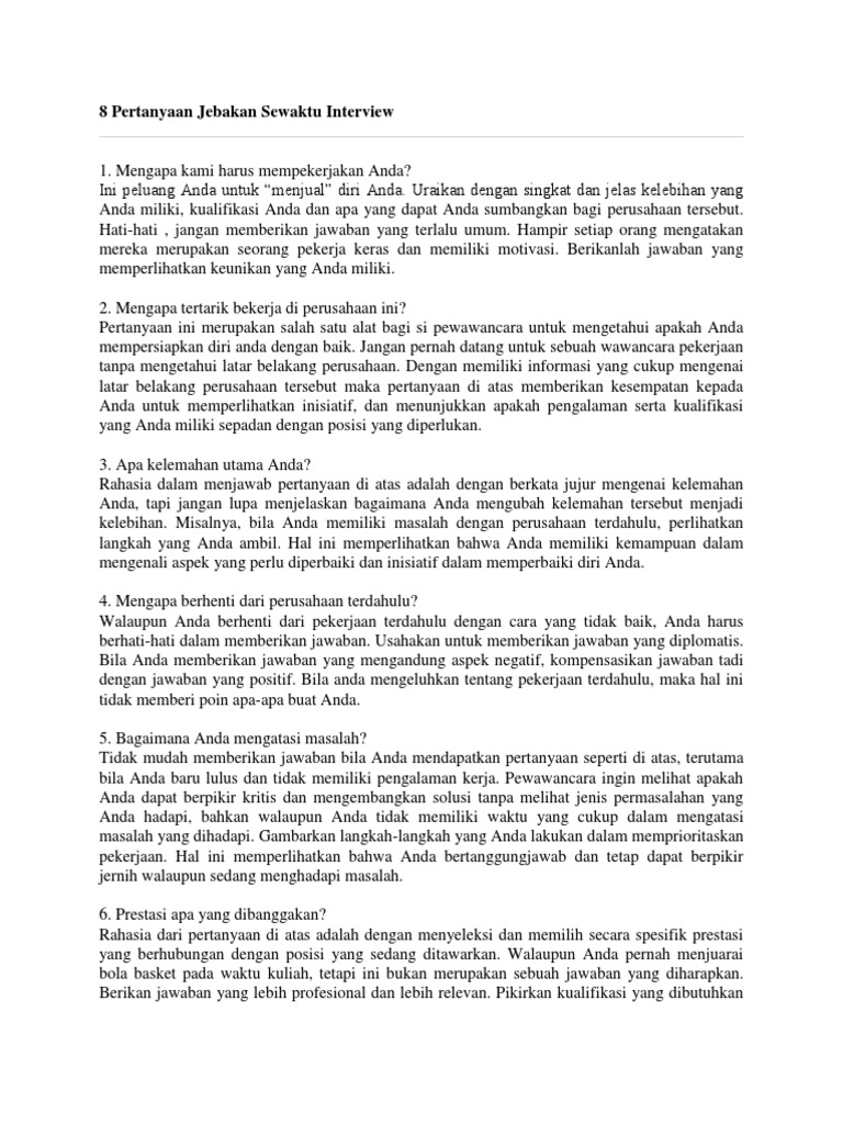 Jawaban Pertanyaan Interview Amp 8220 Out Of All Other Candidates Why Should We Hire You Sederet Com from static.sederet.com Strategi untuk menjawab pertanyaan mengapa kami harus mempekerjakan anda? jawabanmu harus menunjukkan bahwa kamu adalah orang yang tepat yang dapat memberikan solusi terhadap masalah rekruter, untuk itu kamu harus meyakinkan rekruter bahwa di antara sekian banyak kandidat. Beranjak dewasa, aku memiliki teman seorang kristiani, bahkan aku dan dia menjadi sahabat. Jawaban interview untuk pertanyaan kenapa kami harus mempekerjakan anda? haruslah yang bisa saling menguntungkan, terutama saya memiliki ketertarikan yang lebih untuk posisi sales dan marketing ini, saya memiliki pengalaman dalam membuat suatu event organizer pada saat kuliah. Anda tak perlu merasakan gerah atau kepanasan karena selain harga yang terjangkau masih ada lagi beberapa alasan kuat yang membuat ac haier ini tidak bisa dipandang sebelah mata. Jawab pertanyaan interview kenapa anda merasa layak kami rekrut. Kami berkomitmen untuk memberi pelayanan terbaik bagi anda dan. Kami memiliki teknisi yang handal dan sudah berpengalaman dalam. Legalitas perusahaan jelas perusahaan pabrik sepatu kami memiliki legalitas atas nama pt pejuang keluarga indonesia yang terdaftar di kemenkum ham ri, sehingga kami menjamin keamanan transaksi dengan rekening tunggal atas nama perusahaan.