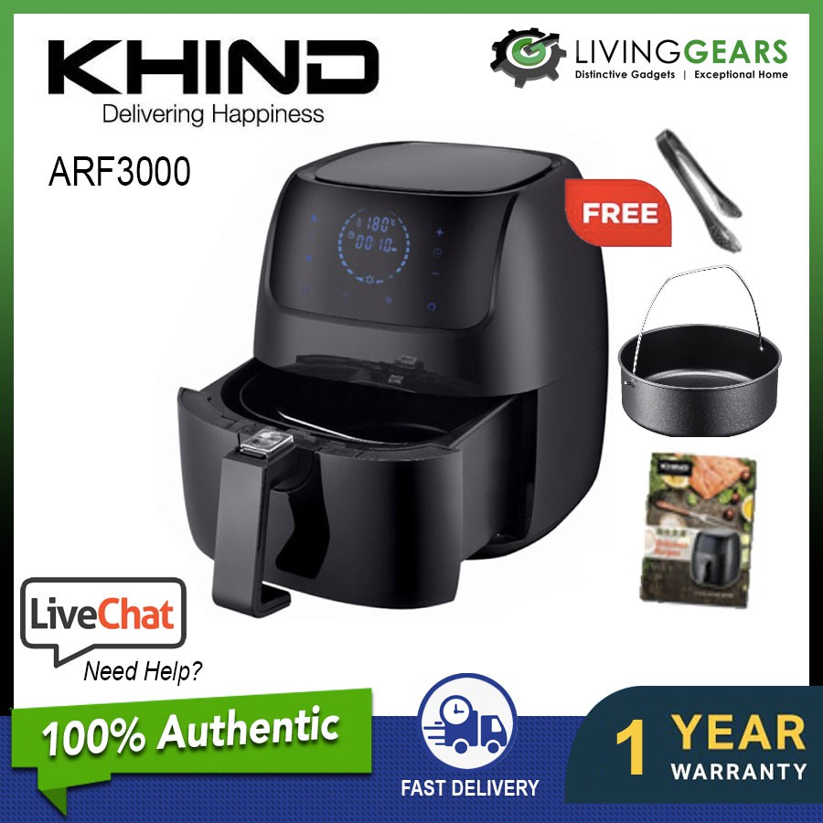 Khind Air Fryer Arf3000 Onn Lightning Electrical The Light Veteran from onnlighting.com.my Arf3500d, arf35, arf77, arf9500, arf3000, arf26. Using one is so much more healthy than cooking your food with a deep fryer. Who doesn't like a more 'class' kitchen? Besides, the khind air fryer arf300 has a beautiful and sleek digital display with touch control, which upgrades your kitchen aesthetically. Nowadays, i believe every each household have this products whether what the brand it is. With khind's air fryer, you can now have the piece of fried chicken or french fries you have always wanted at home, without the undesirable health risk and guilt. Countertop air fryers are an increasingly popular kitchen gadget. 2, jalan astaka u8/82, seksyen u8, bukit jelutong