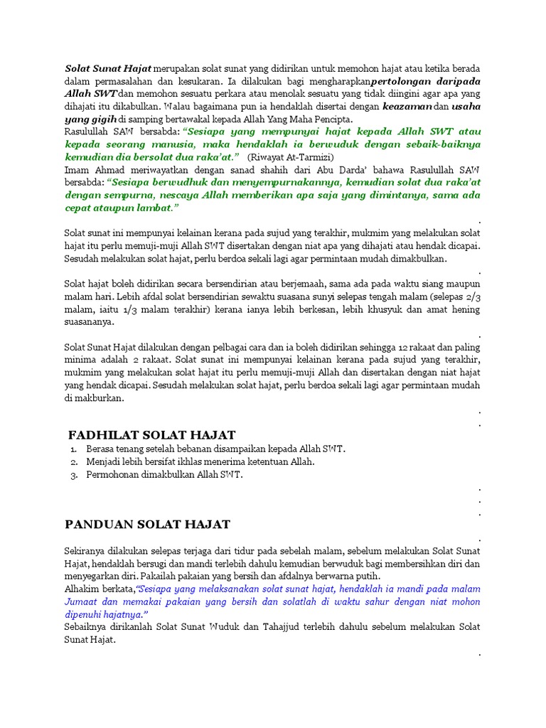 Niat Solat Sunat Hajat from i0.wp.com Sholat hajat adalah sholat sunnah yang dianjurkan bagi seseorang yang mempunyai hajat/keinginan. Tata cara sholat hajat lengkap beserta niat sholat hajat, doa sholat hajat, bacaan sholat hajat dan waktu sholat hajat yang baik dan paling utama. Sholat hajat adalah sholat sunnah yang dikerjakan dalam rangka meminta kepada allah swt agar semua hajat atau keinginan kita dikabulkan. Pertama, mengerjakan sholat witir dengan 2 rakaat salam, lalu. Adapun jumlah rakaatnya mulai dari 2 rakaat sampai 12 rakaat,dan setiap 2 rakaat salam, sedangkan waktu. Orang yang melakukan sholat hajat ini pasti memiliki harapan akan suatu keinginan ataupun hajatnya agar dapat dikabulkan oleh allah swt. Secara ringkas, tata caranya sebagai berikut Cara sholat hajat khusus rejeki ini meliputi bacaan surat pendek, waktu sholat, dan bacaan doa yang perlu dilantunkan.